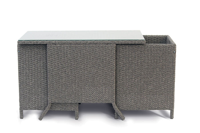 Jednoduchý partnerský sedací set z umělého ratanu a kvalitní ocelové kostry. Ratanový nábytek je plně skládací, proto je vhodný nejen pro trvalé umístění na balkóně nebo malé terase, ale i pro příležitostné posezení na chalupě. Židle po sklopení sedáku se zasunou pod stůl a nezabírají místo na terase či balkónu.