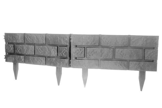 Plastová palisáda se vzorem zahradní zídky snadno výškově oddělí bylinkové záhonky, zahradní stupně či trávník od keřů a stromů. Zahradní palisáda se snadno sestaví a upevní do země pomocí přiložených hrotů a odolává celoročnímu působení povětrnostních vlivů. Jedno balení obsahuje 5 dílů o celkové délce 2,2 m. Díly se k sobě připojí pomocí dvou zámků, které navíc slouží i jako kloub k natočení panelů. Rozměr: výška 18 cm, výška včetně zápichu 29 cm, délka 1 dílu 44 cm.