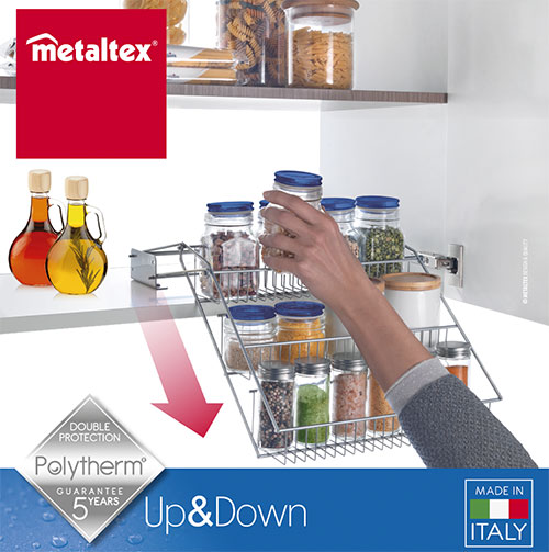 Polička na kořenky se třemi úrovněmi a systémem sklopení, který nabízí přístup k výběru požadovaného koření. Stojan na kořenky udržuje všechna koření viditelná a přehledně uspořádaná v jednom prostoru, šířka poličky pro uložení kořenek je 29 cm. Součástí balení jsou držáky na police a montážní materiál. Výsuvný stojan na kořenky Up&Down 3 police 33 x 28 x 21 cm, šedá je vyroben z materiálu s povrchovou úpravou polytherm. Polytherm je dvojitá povrchová úprava odolná proti korozi a odpuzující prach.