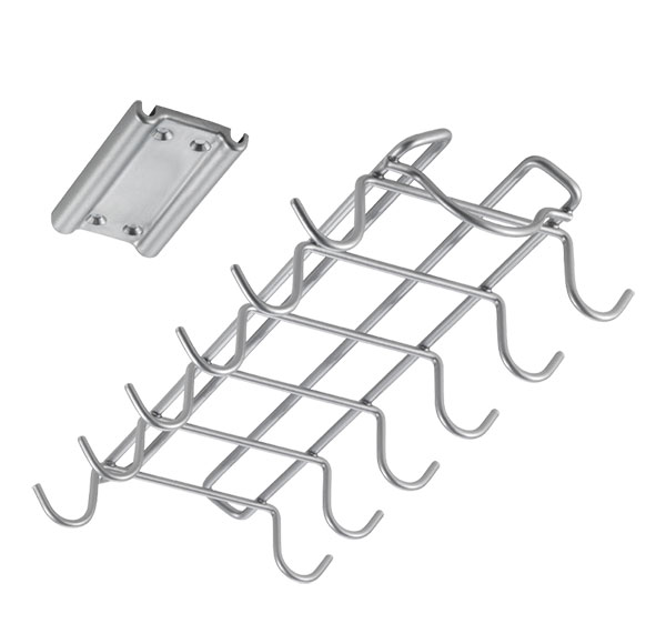 Výsuvný kovový držák s 12 háčky na malé hrníčky na kávu nebo kuchyňské náčiní, který pomáhá šetřit místo v kuchyňské lince. Držák se přišroubuje na spodní stranu police kuchyňské linky, montážní materiál k připevnění na poličku je součástí balení. Výsuvný držák s 12 háčky Hooks, na hrníčky na kávu a kuchyňské náčiní, 13 x 28 x 5 cm je vyroben z materiálu s povrchovou úpravou polytherm. Polytherm je dvojitá povrchová úprava odolná proti korozi a odpuzující prach.