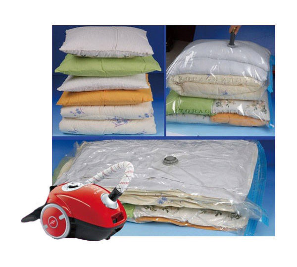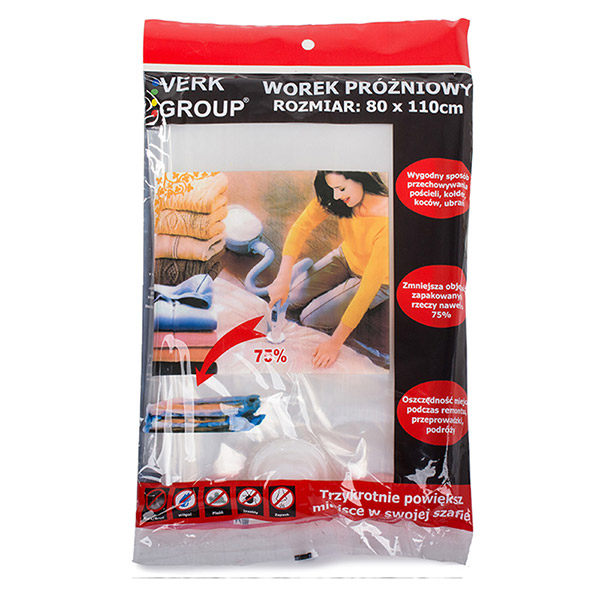 Velké vakuové sáčky 110 x 80 cm slouží k uskladnění a balení sezónního textilu. Vakuový pytel věci chrání před prachem, vlhkostí, plísněmi, roztoči, moly atd. Po vložení věcí a odsátí vzduchu šetří vakuový pytel až 75% místa ve skříni nebo šatně. Vakuové pytle využijete také při stěhování nebo cestování. Po vyjmutí z pytle věci získají zpět svůj tvar. Předměty určené k uskladnění složte a následně vložte do pytle. Nedávejte příliš mnoho oblečení do jedné tašky. Všechny předměty vložené do sáčků by měly být čisté a suché. Pomocí vysavače odsajte z vakuového pytle přes vakuový ventil přebytečný vzduch.