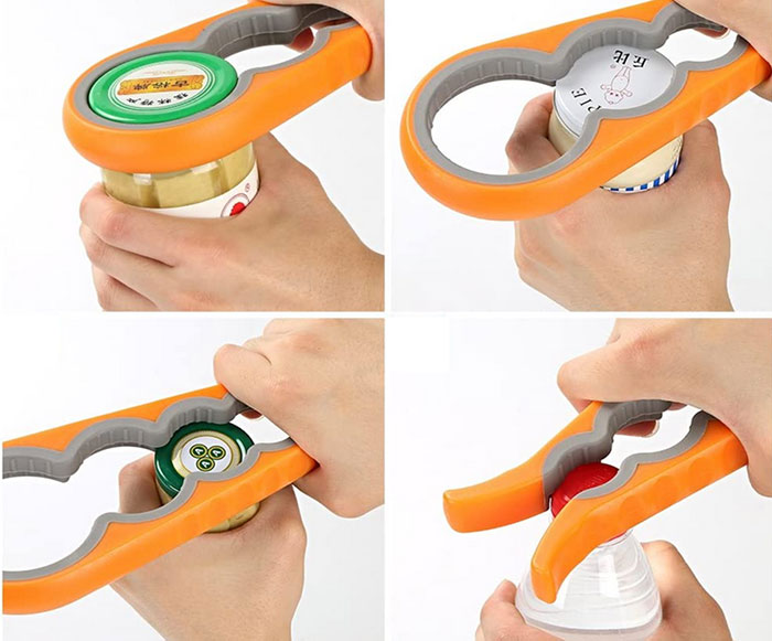 Plastový otvírák na víčka, se kterým snadno povolíte víčka a uzávěry se závitem. Otvírák má 4 možnosti nasazení podle velikosti víčka a díky své konstrukci se jednoduše přizpůsobí přesné velikosti uzávěru. Plastový otvírák na víčka a uzávěry 7362 univerzální 23 cm se jistě stane nezbytným pomocníkem ve Vaší kuchyni. Dodáváme v barvě dle aktuální skladové zásoby.