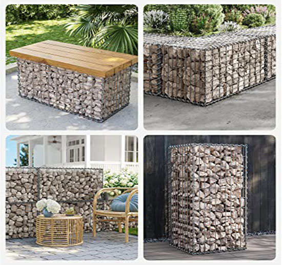 Gabionový koš s všestranným využitím je ideální pro zahradní architekturu a krajinnou architekturu, pro opevnění nábřeží a jako opěrná zeď nebo základový stavební prvek. Gabionové koše mají snadnou montáž, zašroubováním spirálových spojů jednoduše svážete drátěné mřížky k sobě, není potřeba žádné speciální nářadí. Gabion je vyroben z pozinkovaného drátu, je velmi robustní a odolný proti korozi. Distanční vložky poskytují dodatečnou stabilitu. Jednotná velikost oka 10 x 5 cm. Gabionový koš 100 x 50 x 50 cm může sloužit jako alternativa k betonovým a cihlovým stěnám. Pro výplň lze podle potřeby použít různé materiály jako lomový kámen, vápenec, oblázky, cihly nebo dřevěné bloky apod. Pro dekoraci můžete kreativně použít světla nebo rostliny a získát tak na zahradě vlastní umělecké dílo.