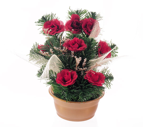 Hřbitovní váza Roseta se zápichem je určena pro umístění živých i umělých květin na hroby a pomníky. Horní průměr vázy je 10 cm, spodní průměr 21 cm. Proti převržení je váza Roseta opatřena odnímatelným plastovým zápichem s bodcem délky 13 cm. V horní části je váza Roseta opatřena vyjímatelným plastovým kolečkem, které dělí horní otvor na několik částí pro snažší aranžování květin.