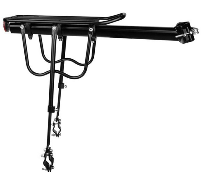 Zadní nosič na sedlovku ze slitiny hliníku, který Vám poskytne dodatečný prostor pro přepravu věcí. Nosnost nosiče pro jízdní kola je 50 kg, což umožňuje přepravu velké brašny nebo zajištěné tašky. Rozměry nosiče na kolo jsou 55 x 14,5 cm, výška 35-45 cm. Součástí dodávky je i gumový popruh na upevnění menšího nákladu a montážní materiál.