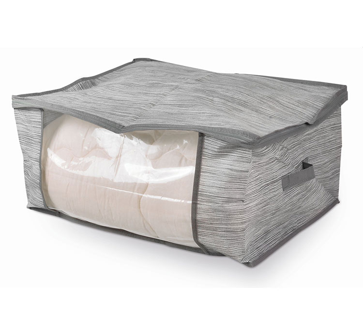 Úložný textilní obal se zapínáním na zip je ideální pro oděvy, přikrývky a polštáře. Chrání před moly a prachem, díky průhledu pomůže udržet přehled o uložených věcech. Úložný box na oděvy s průhledem 60 x 45 x 30 cm je vhodný pro skříně, regály nebo pro úložné místo pod postelí. Úložné boxy na oděvy s průhledem dodáváme v barevném provedení dle aktuální skladové zásoby (šedá nebo šedohnědá).