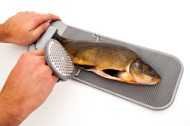 Prkénko na čištění ryb z plastu se speciálním povrchem a klipsem pro uchycení rybího ocasu, takže ryba při čištění neklouže z prkénka a nepadá. Součástí prkénka na ryby je čistící škrabka z nerezové oceli. Prkénko na ryby je skládací, což ocení především rybáři, kteří chtějí očistit rybu přímo na místě, kde ji ulovili. Ve složeném stavu má prkénko na ryby rozměr 25 x 15 x 5 cm.