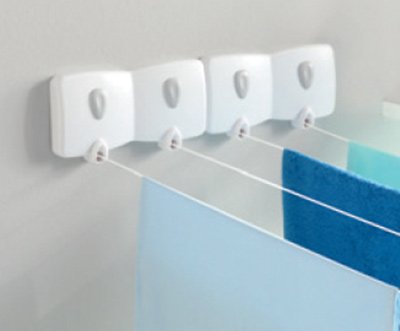 Samonavíjecí sušák do koupelny se dvěma nylonovými šňůrami, který se na zeď upevní přišroubováním. Montážní materiál je součástí balení. Nylonové šňůry jsou od sebe vzdáleny 11,6 cm, šňůry je možné vysunout až na délku 5 m, čímž získáte 10 m sušící délky. Samonavíjecí sušák je vhodný do koupelen, sušáren i na terasy. Použitím několika sušáků upevněných vedle sebe můžete získat sušící délku dle Vašich potřeb.