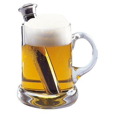 Ohříváček na pivo z nerezové oceli se stojánkem pro snadné odkládání a osušení ohříváčku. Ohříváček na pivo se stojánkem po naplnění teplou vodou slouží k ohřátí příliš studeného piva. Pro snadnou manipulaci a zavěšení na okraj sklenice je ohříváček opatřen úchytem. Rozměr ohříváčku včetně stojánku je 6,5 x 6,5 x 17 cm, samotný ohříváček má průměr 25 mm a délku 16 cm. Ohříváček na pivo je vyroben z nerezové oceli, víčko je opatřeno gumovým těsněním.